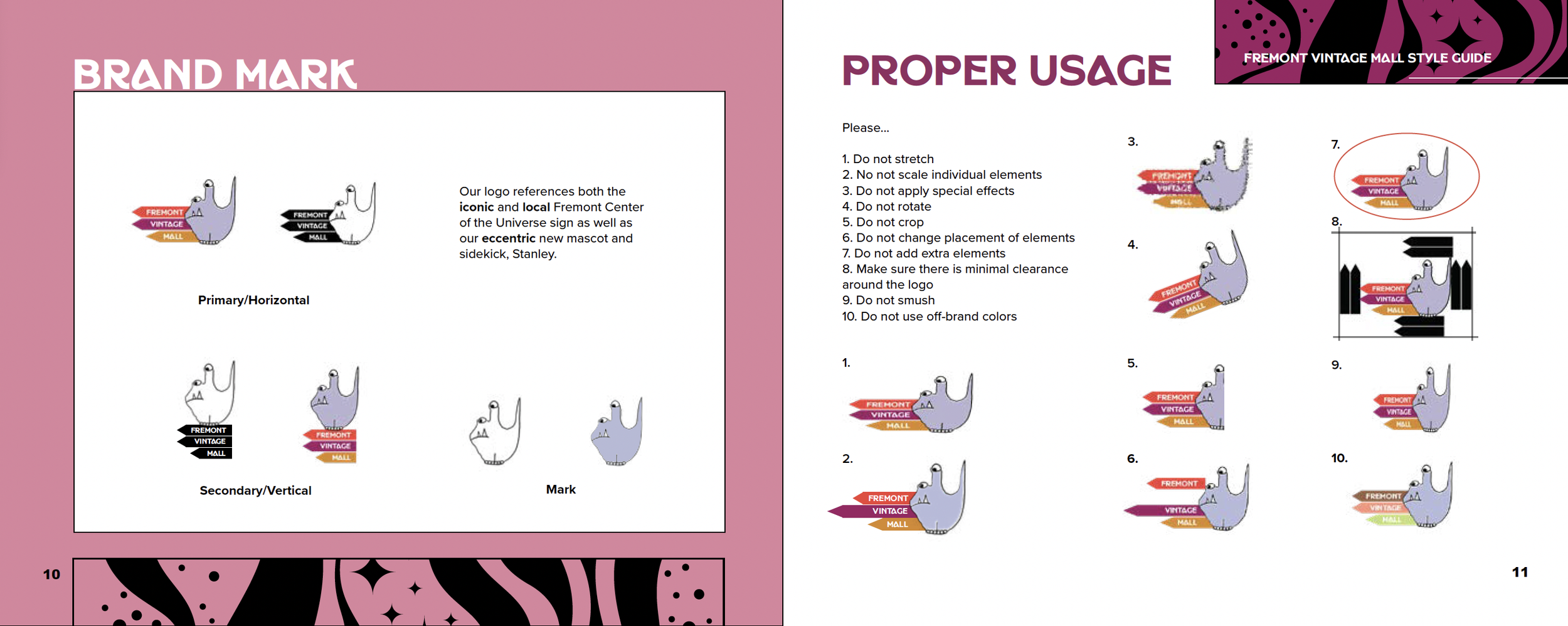 We rebranded The Fremont Vintage Mall to represent its core values: eccentric, iconic, and local. The tagline “Cherish the strange, explore the universe” reflects the vast array of items available at the store. Stanley was discovered and became a huge inspiration for the logo and is certainly eccentric and iconic. We celebrate Fremont Vintage Mall being a local institution with the sign posts in the logo referencing The Center of the Universe Signpost.